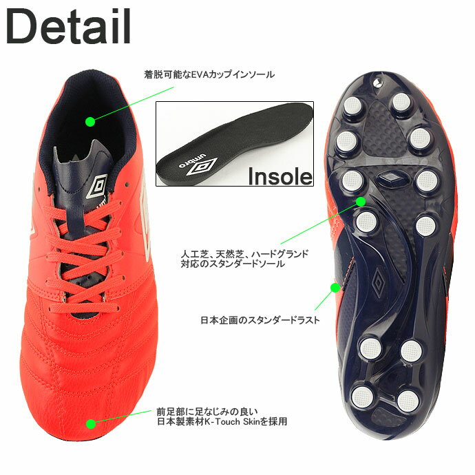 ●スタンダードソールは人工芝、天然芝、ハードグランドに対応! ●足前足部に足なじみの良い日本製素材『K‐Touch Skin』を採用し、高いフィッティングとボールタッチの向上を追求! ●ジュニア世代の足の成長を考慮した日本企画のスタンダードラスト。